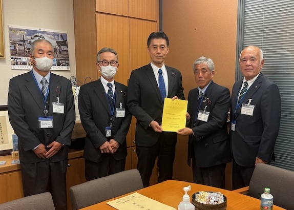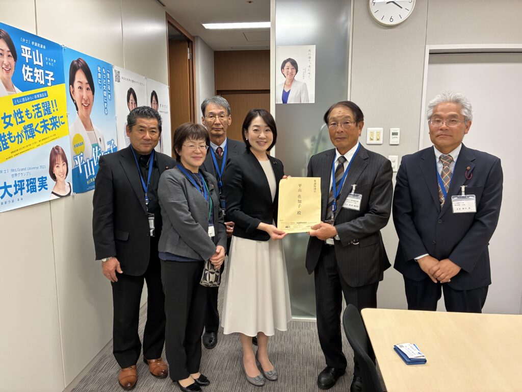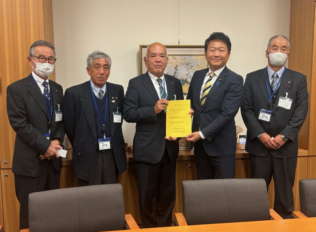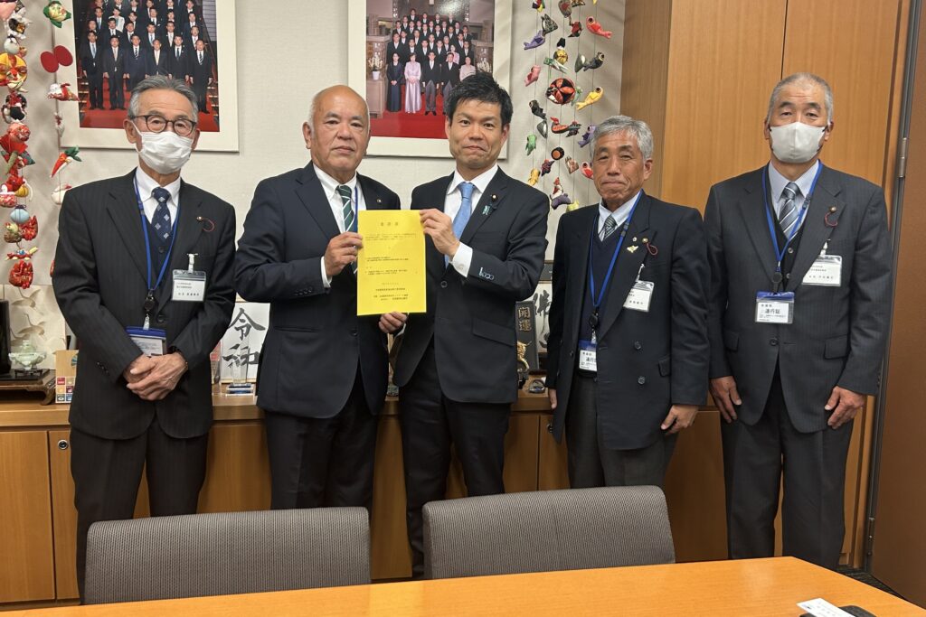 西ケ谷量太郎会長をはじめ、県内農業委員会の会長ら15名は、11月27日に全国農業会議所主催で開催された「全国農業委員会会長代表者集会」で決議された、令和8年度農業関係予算の確保や新たな基本計画の実現、農業構造転換の推進に向けた要請を、本県選出の衆議院・参議院議員19名に提出した。